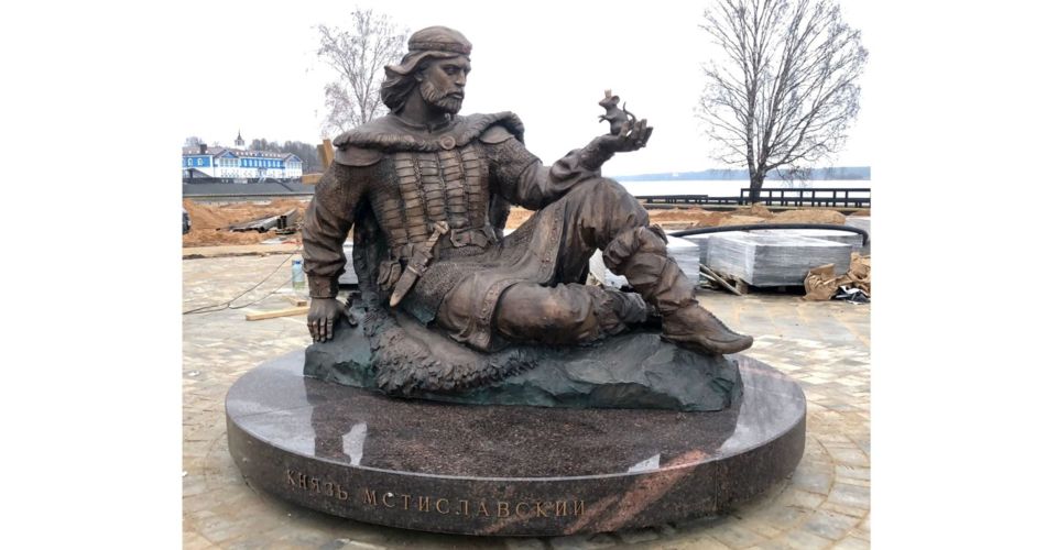 В Мышкине (Ярославская область) установили скульптуру, созданную Еленой Пасхиной. Князь Мстиславский с мышкой в руке появился на набережной. Скульптура передает легенду возникновения города.