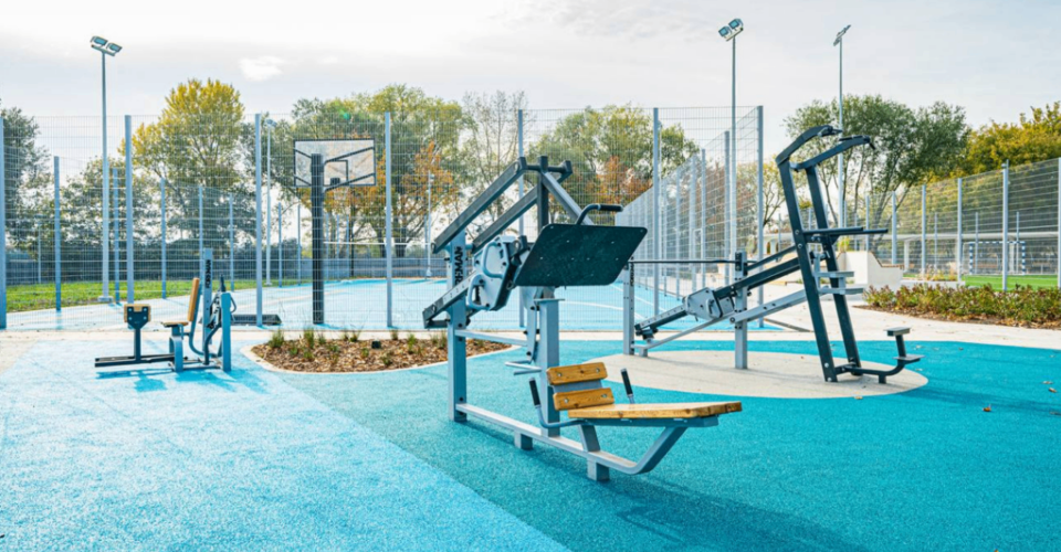 Сделана воркаут-зона с комплексами, состоящими из турников, гимнастических колец, шведских стенок.