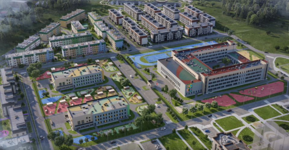 В состав образовательного кластера войдут: два детских сада на 260 мест каждый и общеобразовательная школа на 1100 мест. Реализация запланирована в три этапа.