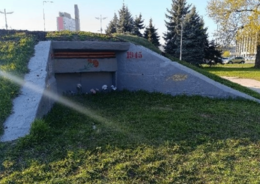 В 1970-х годах у ДОТа № 103 были установлены флагштоки и бетонная стела (архитектор В. Э. Шевеленко) с текстом: „Вечная слава ленинградцам, которые под артиллерийскими обстрелами и бомбардировками противника в Великую Отечественную войну создали оборонительные рубежи, построили долговременные огневые точки и вместе с частями Советской армии отразили штурм немецко-фашистских войск, не допустили вторжения врага в город Ленина“.