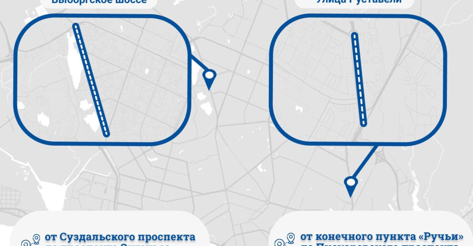 В Выборгском районе идет ремонт участка Выборгского шоссе от Суздальского проспекта до проспекта Энгельса, протяженностью более 7 кмоп. Комплекс работ в обособленной зоне путей включает демонтаж старого полотна и раскладку новой рельсошпальной решетки. Деревянные шпалы заменят на современные железобетонные, а также будут смонтированы рельсы повышенной прочности.
