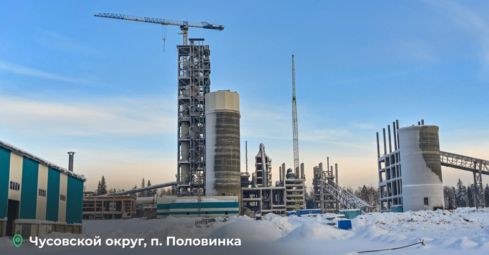 Строительная площадка будущего Чусовского цементного завода (АО «Карьер») в поселке Половинка демонстрирует активное развитие. Возведение объекта, запуск которого намечен на вторую половину 2026 года, ведется комплексно, с параллельным созданием всей необходимой инфраструктуры.