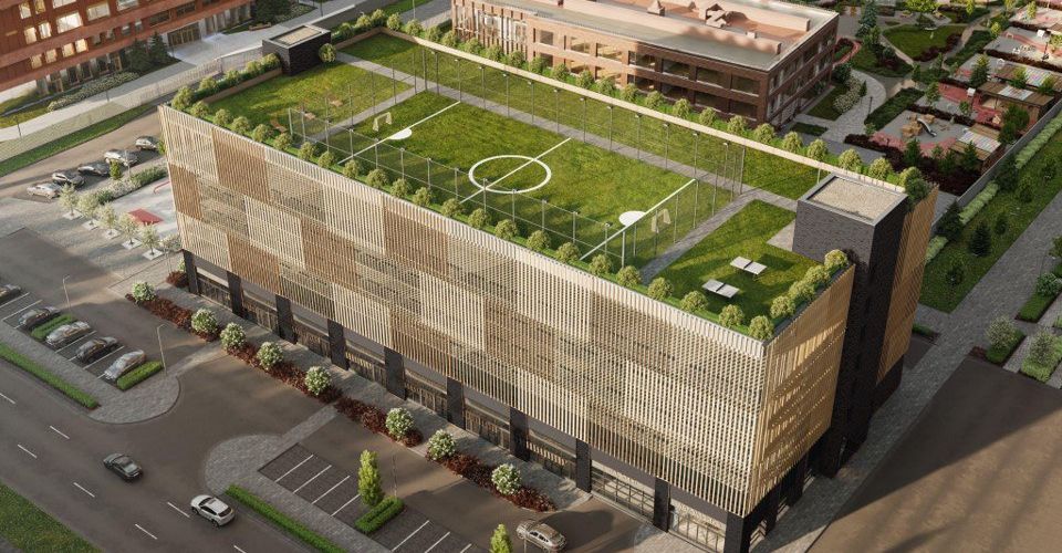 Шестиэтажное здание со встроенными коммерческими помещениями рассчитано на 495 автомобилей. Машино- места разместятся на этажах со второго по шестой, а также на дополнительном уровне под крышей. В проекте предусмотрены 357 постоянных парковочных мест и 138 временных — для гостей. Первый этаж займут коммерческие сервисы: минимаркет, ресторан, автомойка, офисы, а также помещения свободного назначения. На эксплуатируемой кровле появятся спортивная площадка и благоустроенная зона отдыха для жителей.