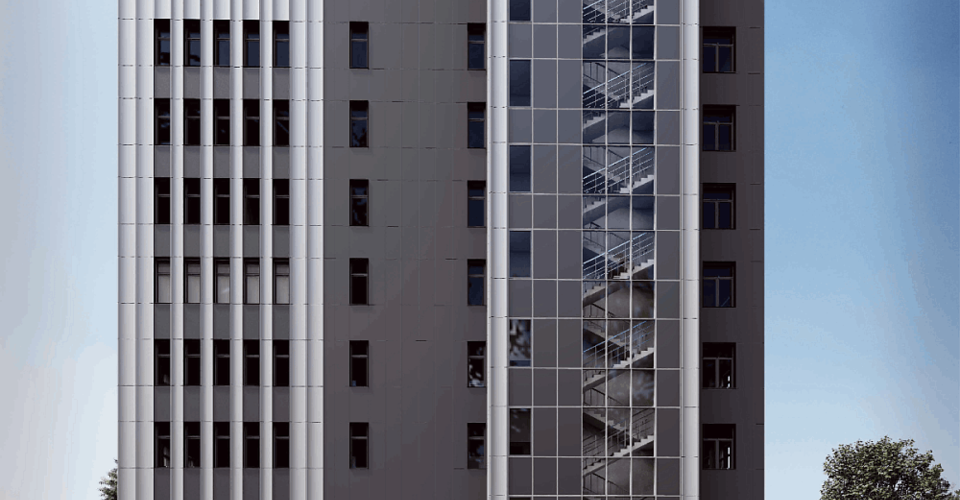 Это будет прямоугольное в плане строение с переменным количеством этажей (9-10), включая подвал. Его площадь составит более 11 тысяч кв. м.