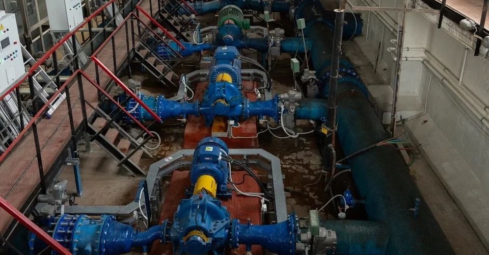 В Петродворцовом районе Петьербурга завершен первый этап обновления технологического оборудования машинного отделения водопроводной насосной станции «ЛГУ».