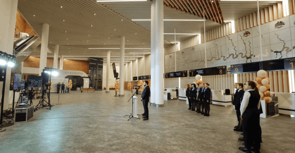 В новый аэровокзал переведены все внутренние рейсы. Обслуживание международных рейсов в новом терминале планируется начать летний период.