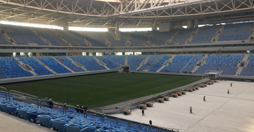 В начале ноября инспекторы ФИФА выявили технические нарушения у выкатного поля строящегося стадиона «Зенит-Арена». Конструкция, по их словам, не соответствует нормативам по вибрации в семь раз. Вице-губернатор Петербурга Игорь Албин, комментируя ситуацию, назвал ситуацию с полем арены «рабочей». "Как и любая подвижная конструкция, оно вибрирует. Нам предстоит вывести максимально допустимые значения, усиливая конструкции. 20 декабря будет очередной этап испытаний и мероприятий, которые способствуют устранению вибрации», - сообщил он.