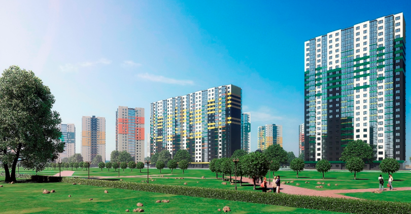 Реализация проекта началась со строительства многоэтажного дома, в котором представлены одно-, двух- и трехкомнатные квартиры. Их площадь составляет 35,5-75,4 кв. м.