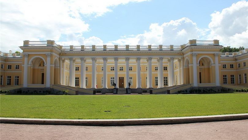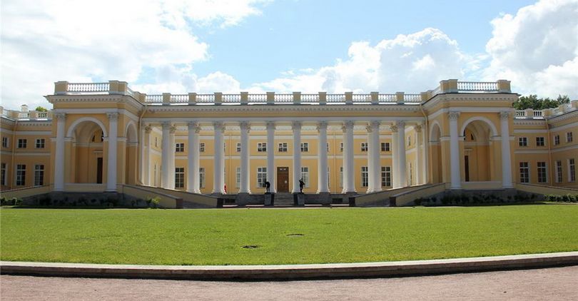 Александровский дворец - двухэтажное здание с антресольными помещениями на высоком цокольном этаже. Стены кирпичные на ленточных бутовых фундаментах. Фасады окрашены в два цвета – белый и желтый. Цоколь облицован известняковой скобой, кровля скатная металлическая. Основной архитектурный мотив - колоннада из двух рядов белоснежных коринфских колонн, связывающих между собой два ризалита на главном фасаде. Особенности композиционного решения: большая протяженность здания и его конфигурация в виде сильно растянутой буквы П. Дворец был построен в 1792-96 гг. для старшего сына великого князя Павла Петровича – Александра по проекту Кваренги.