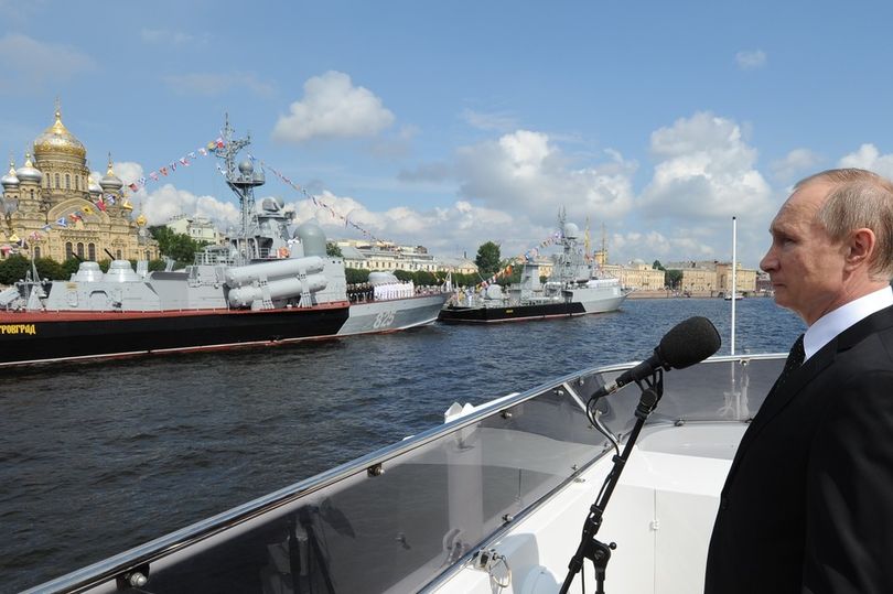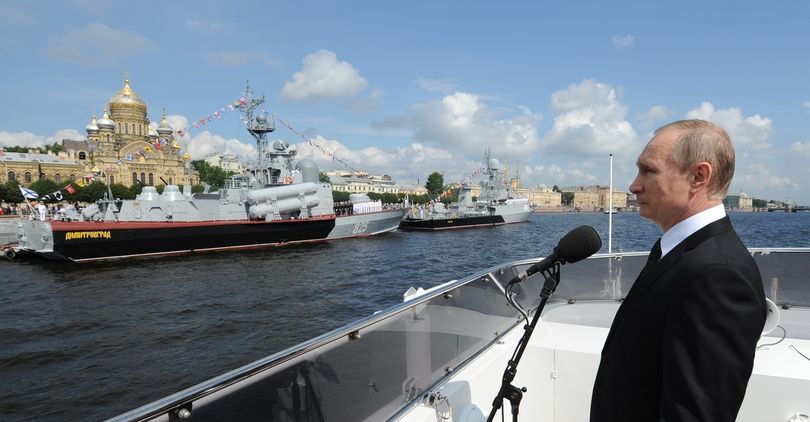 Президент страны совершил обход кораблей, стоящих на рейде у стен Петропавловской крепости и у Адмиралтейской набережной. Среди них большой десантный корабль «Минск», малый противолодочный корабль «Уренгой» и ракетный катер «Димитровград». Над главным адмиралтейством страны был поднят легендарный кормовой Георгиевский флаг линейного корабля "Азов".