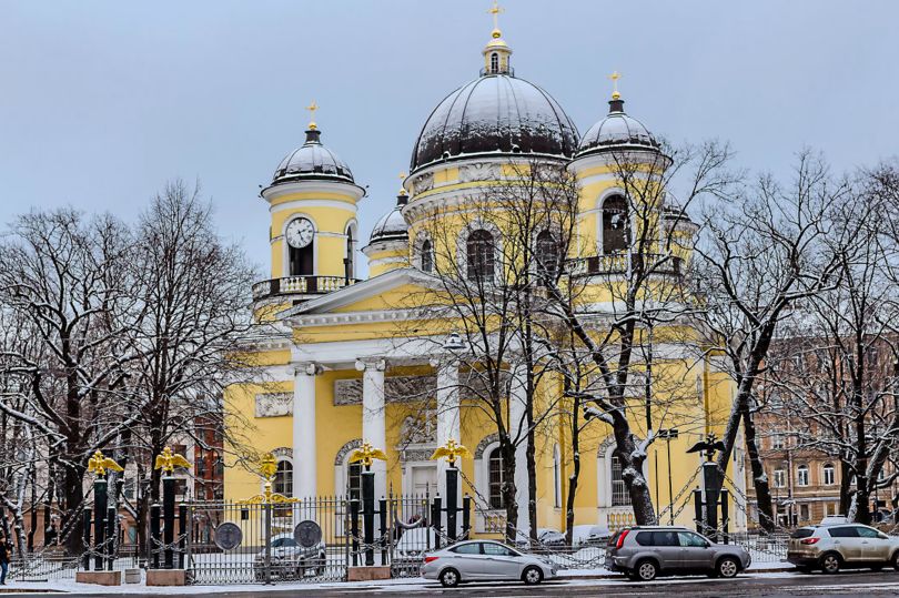 Спасо-Преображенский собор всей гвардии построен по проекту Василия Стасова в 1829 году на месте более раннего храма. Памятник архитектуры классицизма. Площадь собора – 1,18 тыс. кв. м, высота — 41,5 м. В память о победе в русско-турецкой войне 1828—1829 годов вокруг собора сооружена ограда, основа которой — стволы трофейных турецких пушек. На стволах сохранились вычеканенные гербы Османской империи, а на некоторых — данные им имена: «Гнев аллаха», «Священный полумесяц», «Гром извергающий», «Дарю лишь смерть». 102 бронзовых орудийных ствола установлены на 34 гранитных основаниях дульным срезом вниз в знак того, что они уже никогда не будут стрелять.