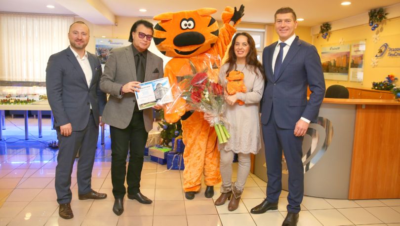 Юбилейного покупателя поздравили первый вице-президент Группы «Эталон» Дмитрий Кашинский и коммерческий директор Группы «Эталон» Андрей Останин.