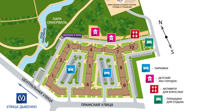 Для жителей комплекса будет предусмотрен собственный выход в парковую зону. Придомовая территория будет благоустроена: выполнено комплексное озеленение, выделена зона отдыха с бесплатным wi-fi. В парадных установят лифты импортного производства, на первых этажах предусмотрены колясочные.