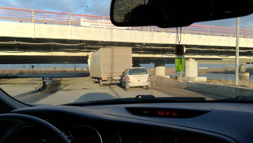 Напомним, этот мост за печальную статистику инцидентов с «Газелями», не вписавшимися в подмостовой проезд, получил народное название «мост глупости».