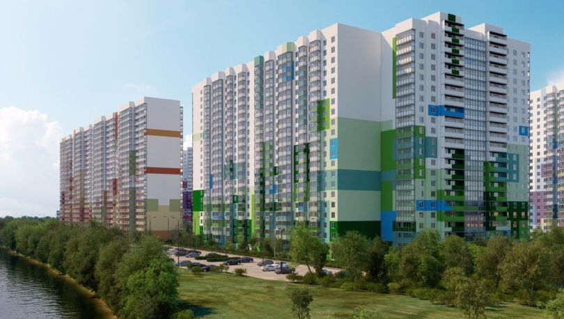 Основной акцент в жилом квартале сделан на оригинальном оформлении фасадов зданий. Для каждого дома выбрана своя цветовая гамма в соответствии с тем или иным временем года. Фасады последнего по счету корпуса выполнены в «летних» тонах – оттенках белого, зеленого и голубого. Окна многих квартир обращены к реке – недвижимость на верхних этажах обладает прекрасными видовыми характеристиками.