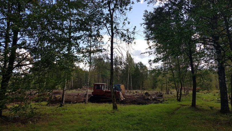 В переустройстве Колпинского парка сделан очередной шаг – специалисты поднимают участки, где будут размещены спортивные площадки, на заданный проектом уровень, а также приступают к обустройству системы водоотведения.
