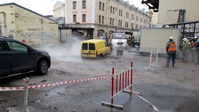 Прорыв трубы с кипятком в центре Петербурга повредил помещения БЦ