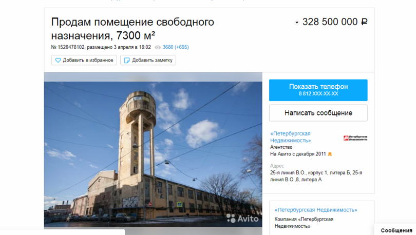 Памятник промышленного конструктивизма – здание канатного цеха завода «Красный гвоздильщик» на 25 линии В.О. - выставили на продажу на сайте бесплатных объявлений. За него хотят получить 328 млн рублей. В нем предлагают разместить офисы, супермаркет, фитнес-центр, кафе, детский центр или креативное пространство.