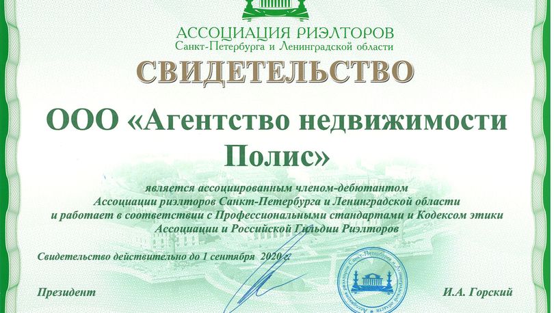 Ассоциация риэлторов Санкт-Петербурга и Ленинградской области пополнилась новым участником — к профессиональному объединению присоединилось агентство недвижимости «Полис», входящее в ГК «Полис Групп».