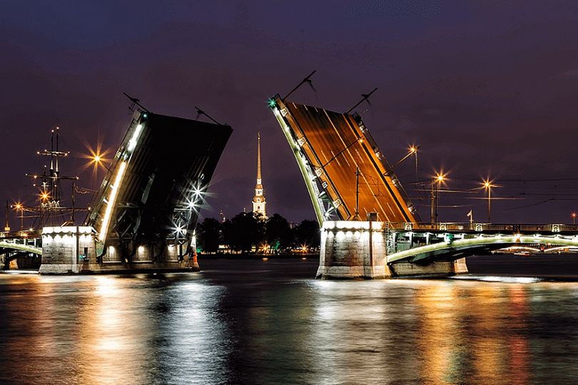Биржевой мост через Малую Неву, соединяющий Васильевский и Петроградский острова, в 1894 году был построен полностью деревянным, затем его рамы заменили на металлические и установили электрические механизмы.