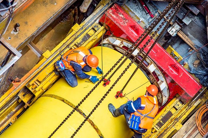 Работы по строительству двух тоннелей общей длиной 261 м ведутся закрытым способом технологией микротеннелирования.