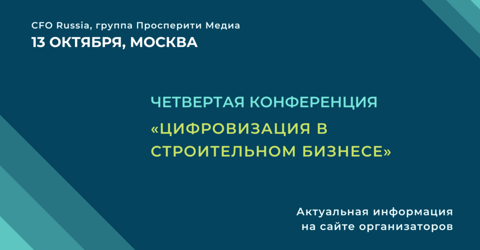 13 октября в Москве пройдет Четвертая конференция «Цифровизация в строительном бизнесе» организованная группой «Просперити Медиа» и порталом CFO-Russia.ru.