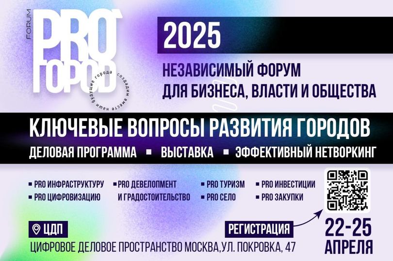 22–23 апреля в Москве пройдёт Всероссийский независимый форум для бизнеса, власти и общества PRO ГОРОD 2025. Форум станет одной из крупнейших федеральных площадок года для обсуждения будущего российских территорий. Мероприятие состоится в Цифровом деловом пространстве в Москве (ул. Покровка, 47) и соберёт более 4000 участников из 50+ регионов России. В центре внимания — инвестиции, цифровизация, экология, развитие городской и сельской среды, образование, устойчивость и человекоцентричный подход.