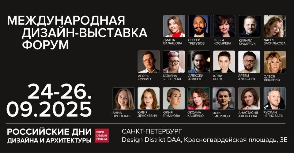 С 24 по 26 сентября 2025 года в Санкт-Петербурге состоится 37-я выставка проекта «Российские Дни дизайна и архитектуры». Событие объединит производителей мебели, отделочных материалов, освещения и предметов декора, а также специалистов в области дизайна и архитектуры.
