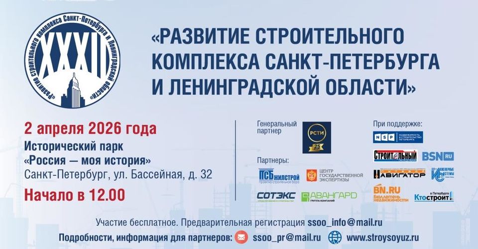 2 апреля в Санкт-Петербурге пройдет 32 практическая конференция «Развитие строительного комплекса Санкт-Петербурга и Ленинградской области». Мероприятие состоится в Историческом парке «Россия – моя история» (СПб, ул. Бассейная, д 32). Начало в 12.00.